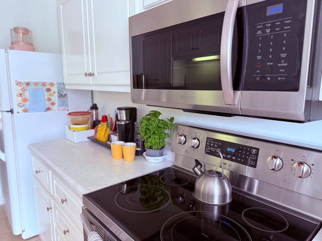 Upon arrival you’ll find a fully stocked kitchen, perfect for those who love to cook. You’ll find all the essentials, in addition to seasonings, canned goods, cookware, and even some goodies in the fridge, so you can whip up your favorite meals with ease.