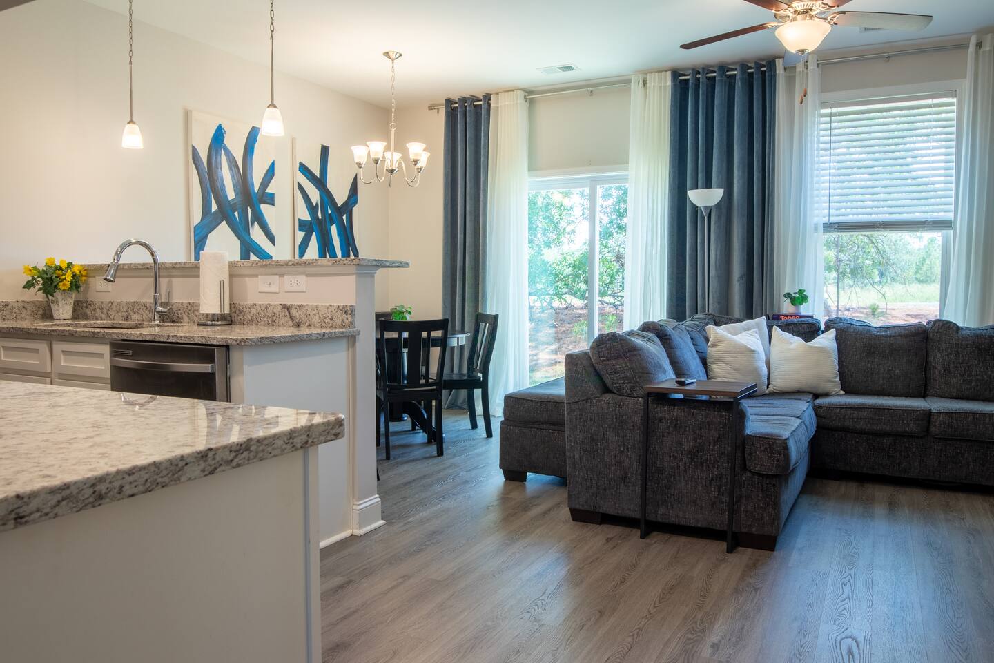 Step away, relax, and enjoy your stay in our “Out the Blue Retreat”. This 3 bedroom, 2.5 bath townhome offers the ability to be close to all of Columbia’s attractions, yet perfectly situated away from all of the hustle and bustle. This space is perfect for a family or group relocating or visiting Columbia area for a few nights or for a longer stay. *Please note*: Parking is limited and may not suitable for more than 2 or extra large vehicles.